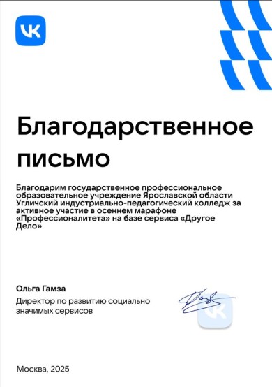 Государственное профессиональное образовательное учреждение Ярославской области Угличский индустриально-педагогический колледж