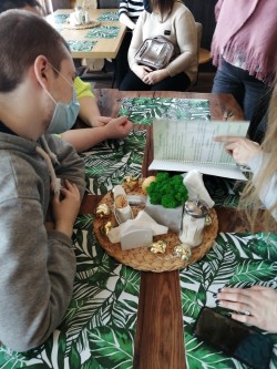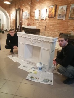 «Наше место прохождения практики - Туристский информационный центр «Углич». Первые дни практики были заняты подготовкой офисного помещения ТИЦ к Новогодним праздникам, а именно декорировали камин, красили стены» (Кознов Данил, Первых Антон)