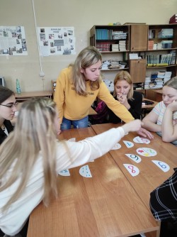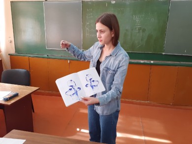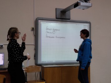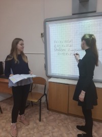 Баранова Анастасия: Проводить первый урок было волнительно, но мне удалось достичь активности при изучении нового материала, добиться отклика со стороны "детей". При подготовке к уроку у меня не было проблем, а в проведении возникли сложности: было трудно взять себя в руки и не волноваться. Проведя первый урок, могу сказать, что мне понравилось быть в роли учителя.